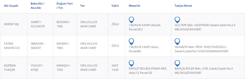 Kayseri’de bugün 3 vatandaşımızı kaybettik. Kayseri’de bugün vefat edenler kimler?
