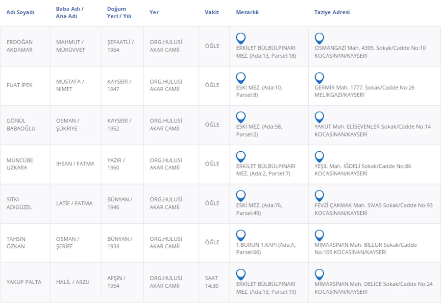 Kayseri’de bugün 7 vatandaşımızı kaybettik. Kayseri’de bugün vefat edenler kimler?