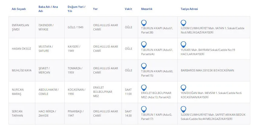 Kayseri’de bugün 5 vatandaşımızı kaybettik. Kayseri’de bugün vefat edenler kimler?