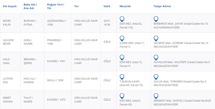 Kayseri’de bugün 5 vatandaşımızı kaybettik. Kayseri’de bugün vefat edenler kimler?