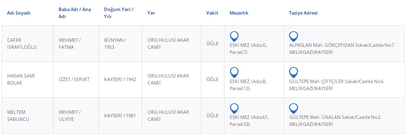Kayseri’de bugün 3 vatandaşımızı kaybettik. Kayseri’de bugün vefat edenler kimler?