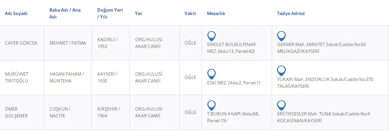 Kayseri’de bugün 3 vatandaşımızı kaybettik. Kayseri’de bugün vefat edenler kimler?