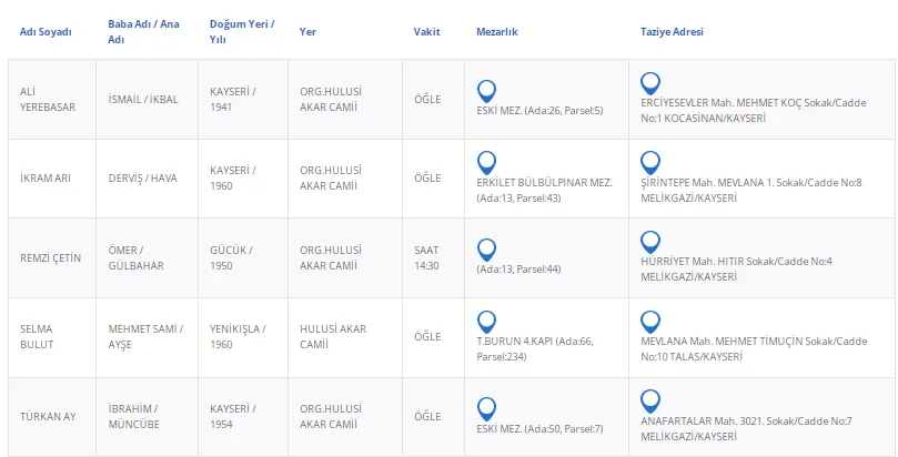 Kayseri’de bugün 5 vatandaşımızı kaybettik. Kayseri’de bugün vefat edenler kimler?
