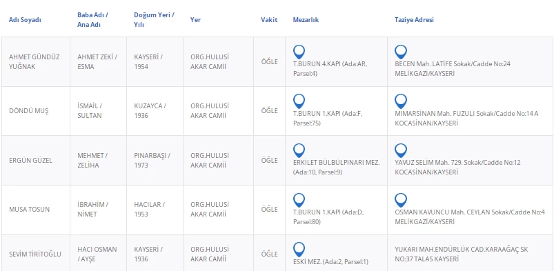 Kayseri’de bugün 5 vatandaşımızı kaybettik. Kayseri’de bugün vefat edenler kimler?