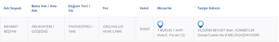 Kayseri’de bugün 1 vatandaşımızı kaybettik. Kayseri’de bugün vefat edenler kimler?