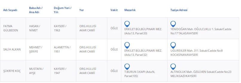 Kayseri’de bugün 3 vatandaşımızı kaybettik. Kayseri’de bugün vefat edenler kimler?
