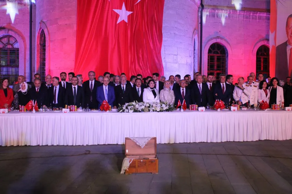 Resepsiyonda bir konuşma yapan Kayseri Valisi Gökmen Çiçek, "Bin yıl önce Sultan Alparslan’la beraber bu toprakları vatan ettik. Anadolu’ya geldiğimiz andan itibaren çok bedeller ödedik. Anadolu’nun kapılarını açtığımız andan itibaren ufkumuz çok uzaklardaydı. Diyardan diyarlara geçtik. Zaferden zaferlere koştuk. Dünyaya hep adalet ve nizam götürdük, huzur götürdük. Çok büyük medeniyetler kurduk. Medeniyetler inşa ettik. Ancak gün geldi. Zor günlerde geçirdik. Bu topraklarda Moğol istilasını gördük. Haçlıların işgalleriyle karşılaştık. Ancak milletimiz öz değerlerine sahip çıkarak, bu istilaları başından def etti. Ardından Osman Gazi ile bambaşka bir yolculuğa çıktık. Balkanlar önümüze açıldı. Sel gibi akıyorduk. Fatih Sultan Mehmet’le İstanbul’u aldık. 3 kıtaya hükmediyorduk. Bütün coğrafyalarda adalet ve nizam vardı. Güçlüydük, kazanandık. Ancak merhametimiz ve vicdanımız her zaman gücümüzün önünde bize setti. Biz bir merhamet medeniyetiydik. Bizim medeniyetimizde soykırım, katliam asla olmamıştır. Anadolu parçalanmak üzereydi. Afyon işgal altındaydı. İzmir işgaldeydi. Gözümüzün bebeği İstanbul işgal altındaydı. İşte bu millet yine içerisinden çıkardığı lideriyle yani Gazi Mustafa Kemal Atatürk önderliğinde bir ve beraber olarak, küllerinden doğarak, o karanlığı def etti. İstiklale yürüdü. Bedel ödeye ödeye bugünlere gelmiş bir millet olarak uyanık olmalıyız" ifadelerini kullandı.