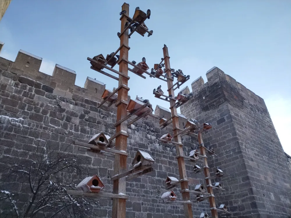 Kent genelinde etkili olan sert kış koşullarına rağmen yuvalara sığınan güvercinlerin görüntüsü, vatandaşların da dikkatini çekti. Ahşap malzemeden yapılan yuvalar, rüzgâr ve tipi gibi olumsuz hava şartlarına karşı doğal bir kalkan görevi görürken, kuşların hayatta kalmasına önemli katkı sunuyor.