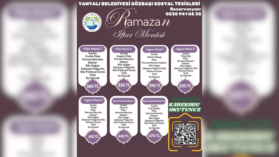 İftar için rezervasyon yaptırmak isteyenlerin 0530 941 08 38 numaralı telefondan iletişime geçebileceği bildirildi. Menü detaylarına ise karekod sistemi üzerinden ulaşılabiliyor.