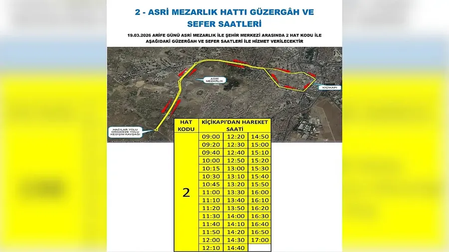Yapılan açıklamada, ücretsiz ulaşım uygulamasının Kayseri Şehir Mezarlığı ile Bülbülpınarı Mezarlığı için geçerli olacağı bildirildi. Vatandaşların yoğunluk yaşamadan ziyaretlerini gerçekleştirebilmesi amacıyla özel sefer planlaması yapıldığı belirtildi.
