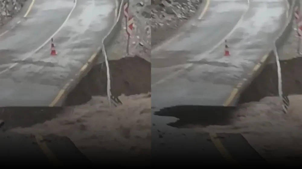 Kayseri’nin Yahyalı ilçesinde etkili olan sağanak yağış sele neden olurken, bölgede bazı mahalleler sel suları altında kaldı. Sel nedeniyle ilçede bulunan Kapuzbaşı Şelalesi’ne giden yolun bir kısmı çökerken, o anlar cep telefonu kamerasına yansıdı.