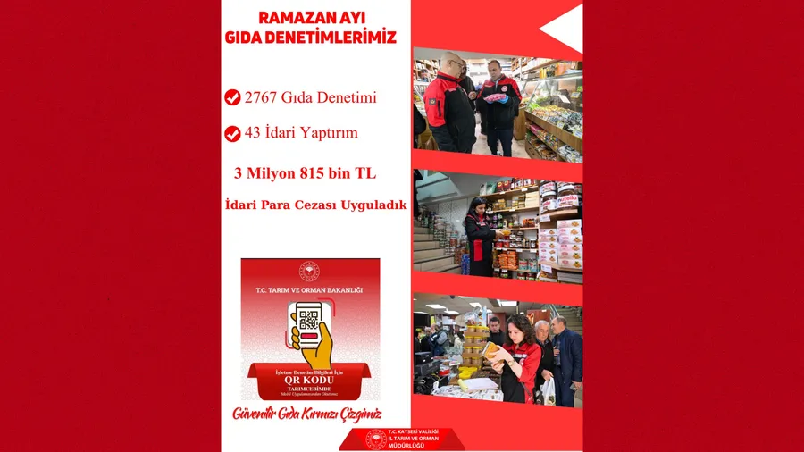 Kayseri’de Ramazan ayı boyunca adeta denetim seferberliği yaşandı. İl Tarım ve Orman Müdürlüğü ekipleri, kent genelinde kapsamlı kontroller gerçekleştirerek işletmeleri mercek altına aldı.