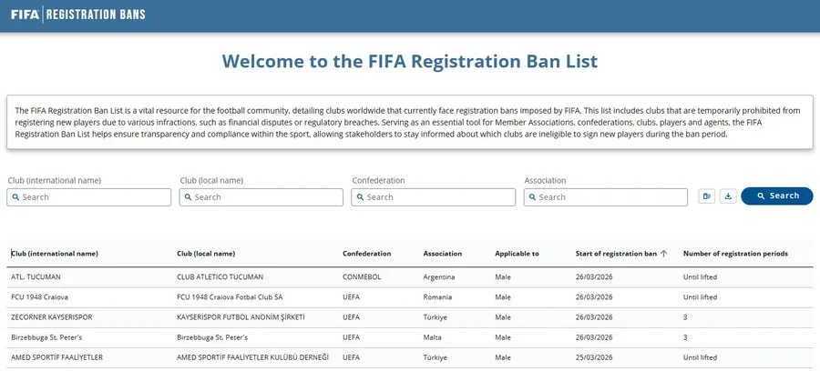 FIFA’nın resmi sitesinde yayımlanan duyuruya göre, aralarında Kayserispor’un da bulunduğu bazı kulüplere transfer yasağı cezası verildi.