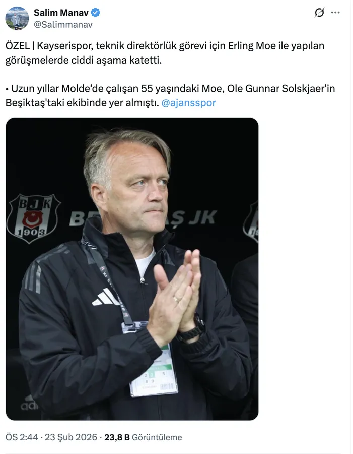 Gazeteci Salim Manav’ın iddiasına göre Kayserispor, Norveçli teknik direktör Erling Moe ile yapılan görüşmelerde ciddi aşama kaydetti. 55 yaşındaki teknik adamın uzun yıllar Norveç ekibi Molde’de görev yaptığı, ayrıca bir dönem Ole Gunnar Solskjaer’in Beşiktaş’taki teknik ekibinde yer aldığı biliniyor.