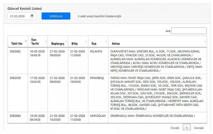 Kayseri'de yarın hangi mahallelerde elektrik kesintisi yaşanacak? – 21 Şubat 2026