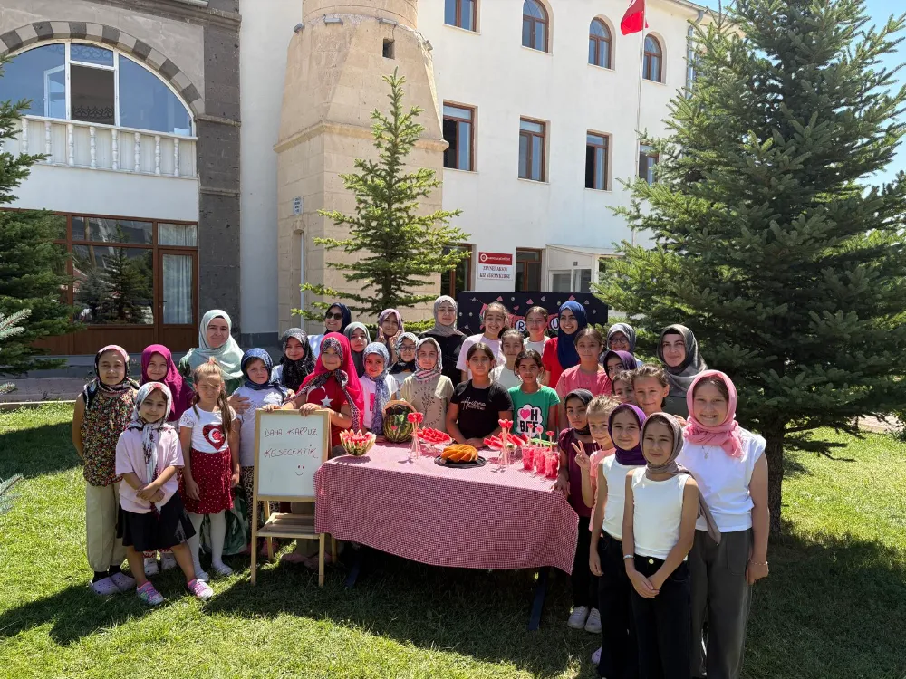 Şenlik boyunca Kur'an-ı Kerim eğitimi alan minikler, öğreticileriyle eğlendi, ikram edilen limonata ve karpuzlarla serinledi.