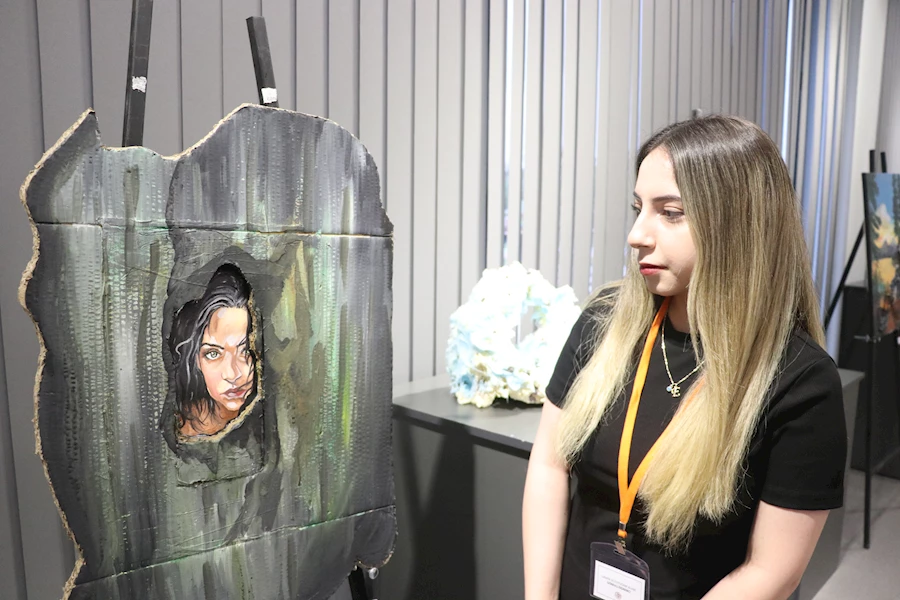 Cemre Açık ise sergide 4 eserinin bulunduğunu, aile, kadın ve sosyal yaşam konularına değindiğini ifade etti.