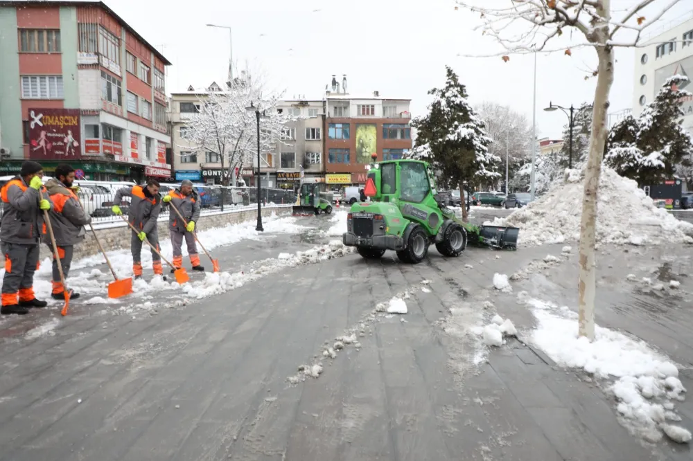 Melikgazi Belediyesi, ilçe genelinde merkez ve kırsal mahallelerde ulaşımın aksamaması için kar küreme, kaldırım temizliği ve tuzlama çalışmalarını aralıksız sürdürüyor.