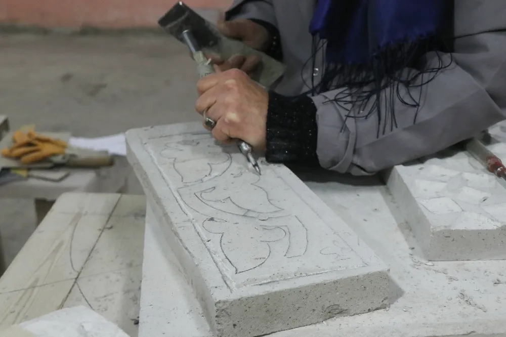 Taş ustalarının da eşliğinde taşa lale ve geometrik motifli desenler işleyen öğrencilerin eserleri yıl sonunda sergilenecek.