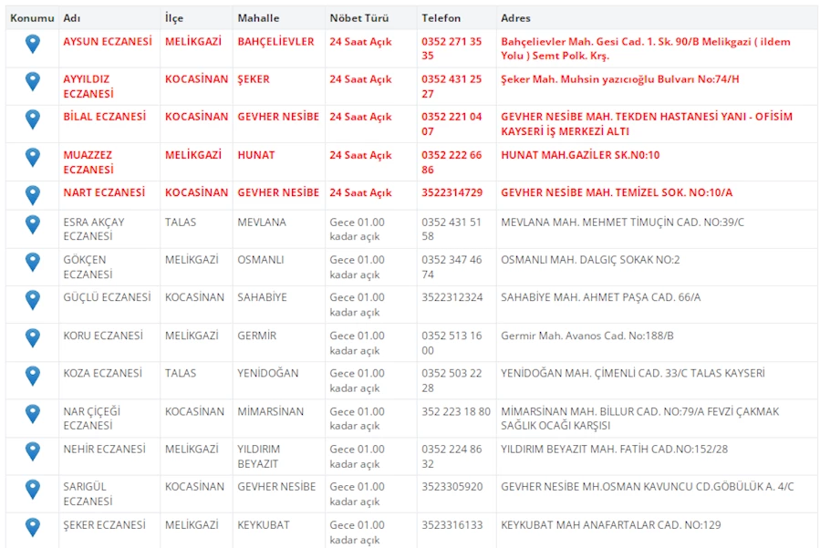 Kayseri'de vatandaşların acil sağlık ihtiyaçları için nöbetçi eczaneler önemli bir yere sahip. Kayseri’nin bugünkü nöbetçi eczanelerini sizler için derledik. 30 Nisan çarşamba nöbetçi eczaneler listesine buradan ulaşabilirsiniz. İşte 30 Nisan nöbetçi eczaneler…