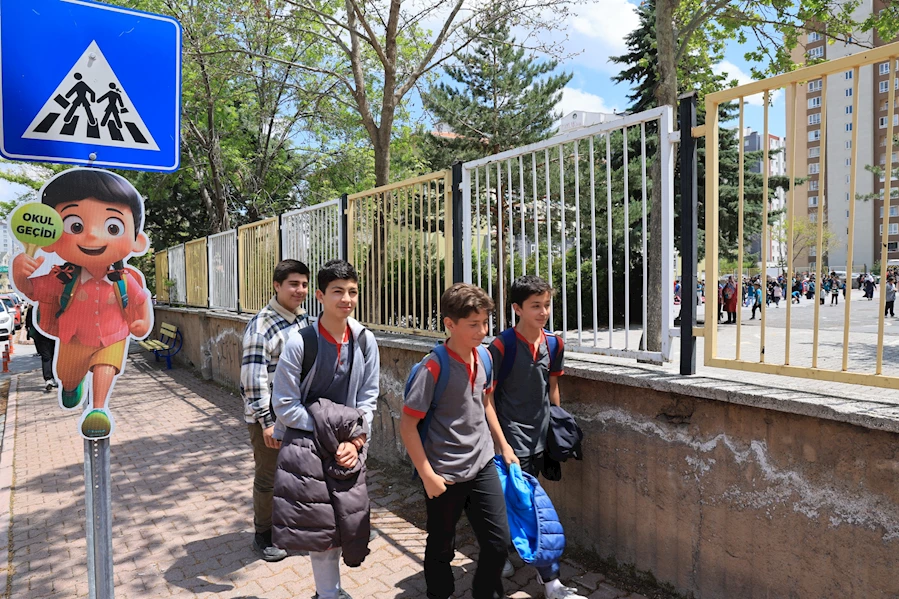 Çizgi film karakterini anımsatan öğrenci görselinin, özellikle çocukların dikkatini çekerek geçidi kullanma bilincini artırması ve aynı zamanda sürücülerde farkındalık yaratması amaçlanıyor.