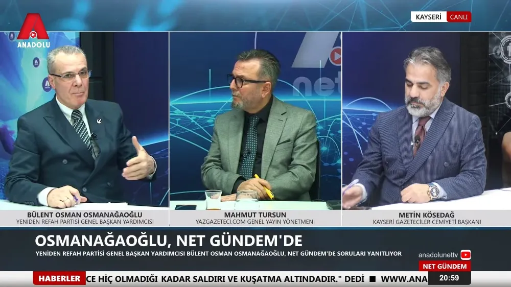Gazeteciler Metin Kösedağ ve Mahmut Tursun’un hazırlayıp sunduğu programa konuk olan Osmanağaoğlu, son dönemde parti değiştiren milletvekilleri ve belediye başkanları üzerinden siyasi sisteme yönelik eleştirilerde bulundu. Canlı yayında konuşan Osmanağaoğlu, “O zaman bütün partileri kapatalım, iktidar ve muhalefet partisi olsun. Amerika gibi iki partili bir sistemle devam edelim” ifadelerini kullandı.