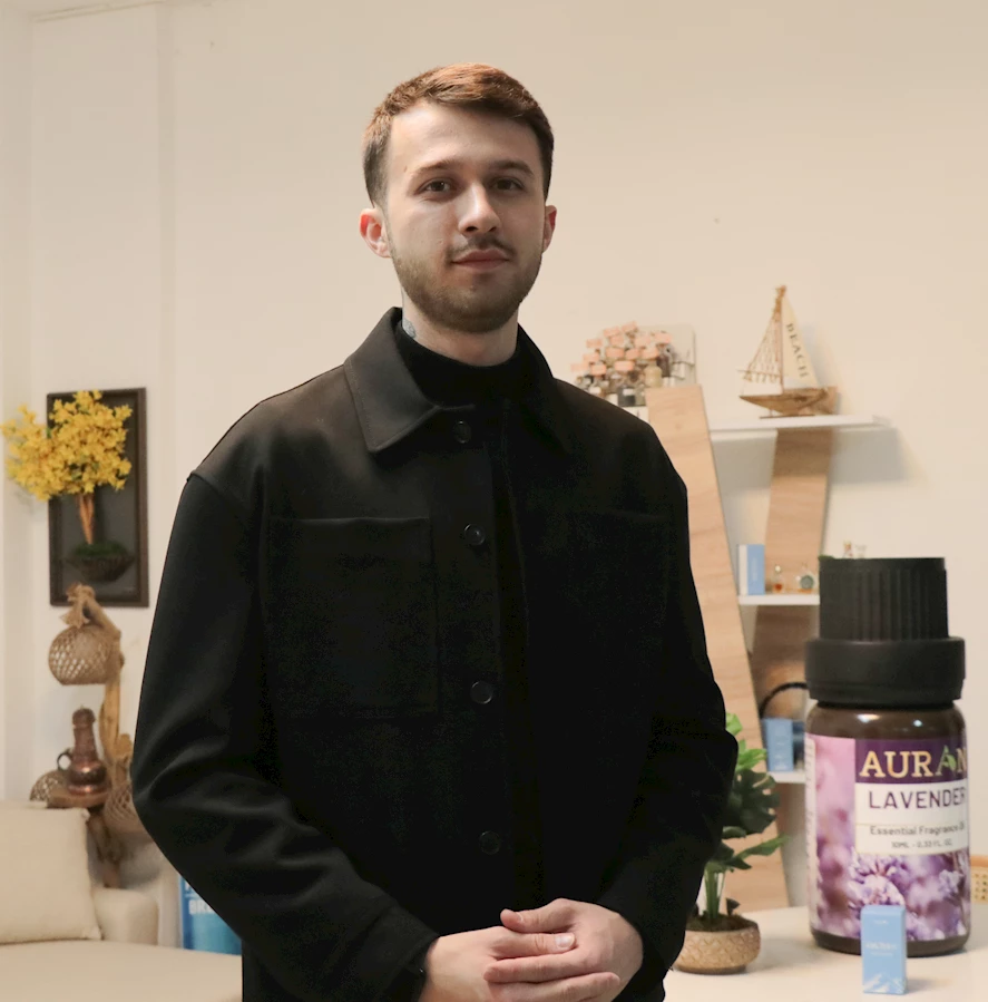 Bir dönem de sosyal medya üzerinden saat sattığını, Kovid-19 salgını döneminde ise dezenfektan ve kolonya sektörüne girdiğini anlatan Karataş, "Kokuları çok sevdim ve merakımın olduğunu fark ettim. Kokularla ilgili ürünler geliştirdiğimde mutlu olduğumu hissettim. 4-5 yıl önce koku ve kozmetik ürünler geliştirmeye başladım, önce fason üretimler yaptırıyordum. Sonra ortaklıklarım başladı ve 2,5 yıldır Kayseri'de kendi markamızla üretim yapıyoruz. Erciyes Teknopark bünyesindeki AR-GE merkezimizde bitkisel koku ve kozmetik bitkisel ürünlerimizi geliştirmeye devam ediyoruz." diye konuştu.