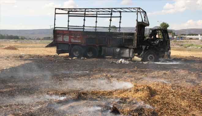 Kayseri´de, park halinde bulunan kamyon nedeni henüz belirlenemeyen sebepten dolayı yanarak kül oldu.