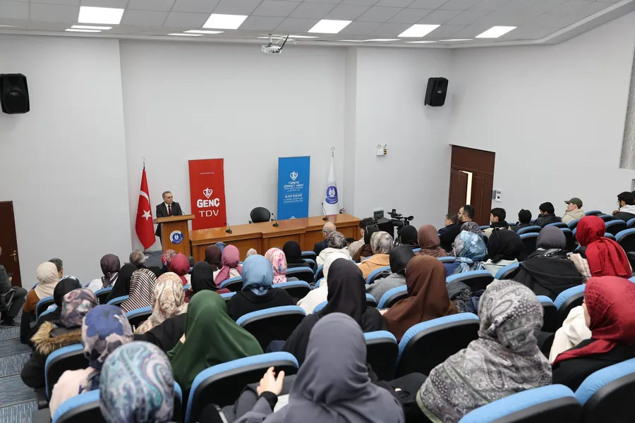Erciyes Üniversitesi (ERÜ) ev sahipliğinde Türkiye Diyanet Vakfı (TDV) Kayseri İl Eğitim Hizmetleri Koordinatörlüğü tarafından düzenlenen "Okuyan Gençlik Düşünen Toplum" etkinliğinin konuğu Rektör Prof. Dr. Fatih Altun oldu.