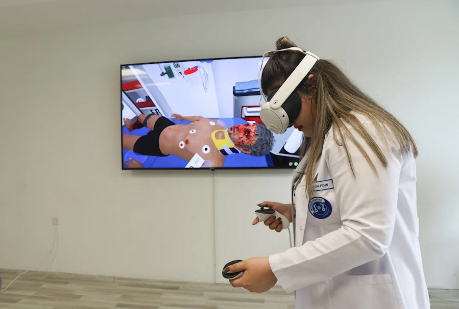 Son teknolojik cihazların yer aldığı ve farklı simülatör birimlerinin bulunduğu merkezde eğitim gören hekim adayları, taktıkları sanal gözlüklerle durumu aciliyet gerektiren hastaları tedavi ederken, uzman doktor adayları da laparoskopik ameliyat yapabiliyor.