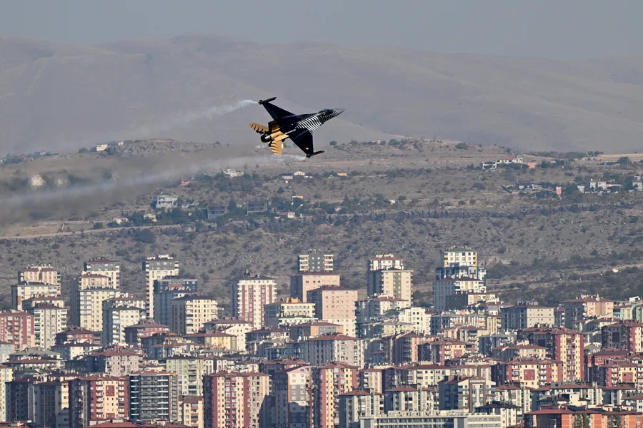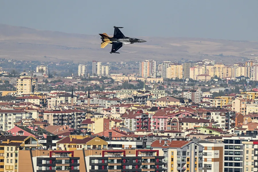 Kayseri 12. Hava Ulaştırma Ana Üs Komutanlığı'ndan havalanan SOLOTÜRK, Recep Tayyip Erdoğan Millet Bahçesi üzerinde gösteri uçuşu yaptı.