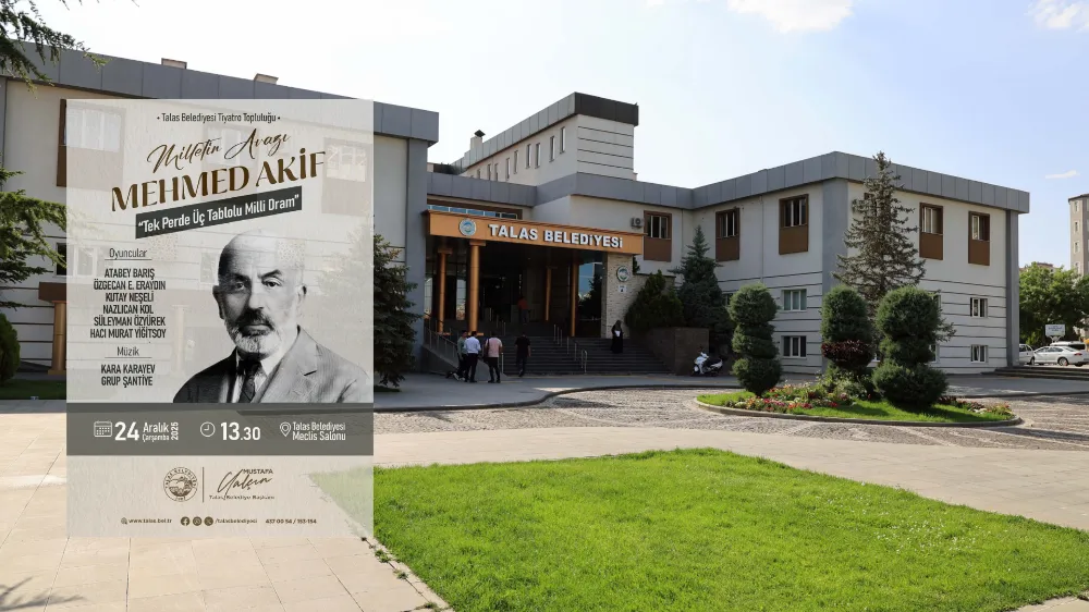 Talas Belediyesi; İstiklal Marşı’mızın şairi, milletin vicdanı Mehmed Akif Ersoy’u vefat yıl dönümünde anlamlı bir sanat etkinliğiyle anıyor. Talas Belediyesi Tiyatro Topluluğu tarafından sahnelenecek 'Milletin Avazı Mehmed Akif' adlı tiyatro oyunu, büyük şairin fikir dünyasını, mücadelesini ve milletle kurduğu güçlü bağı sahneye taşıyor.