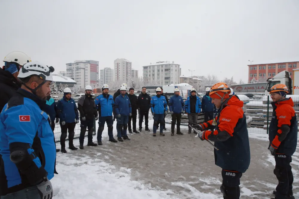 "Kayseri'de zorlu kış şartlarında çalışmalarına devam eden ekipler, depremde arama kurtarma eğitimi yani enkaz içinden canlı çıkarmaya yönelik eğitim alıyor. Bu kapsamda 27 kişilik Türk Telekom ekibi, hafif düzeyde arama kurtarma akreditasyon sınavına hazır olmaları için eğitimlerini tamamlayacak. İl Emniyet Müdürlüğüne bağlı çevik kuvvet ekiplerinin sayısını da 167'ye çıkardık. Onların eğitimleri de sürekli devam ediyor. Ülkemizin olası afetlere daima hazır olması için tüm teşkilatlarla yoğun bir seferberlik başlatıldı."