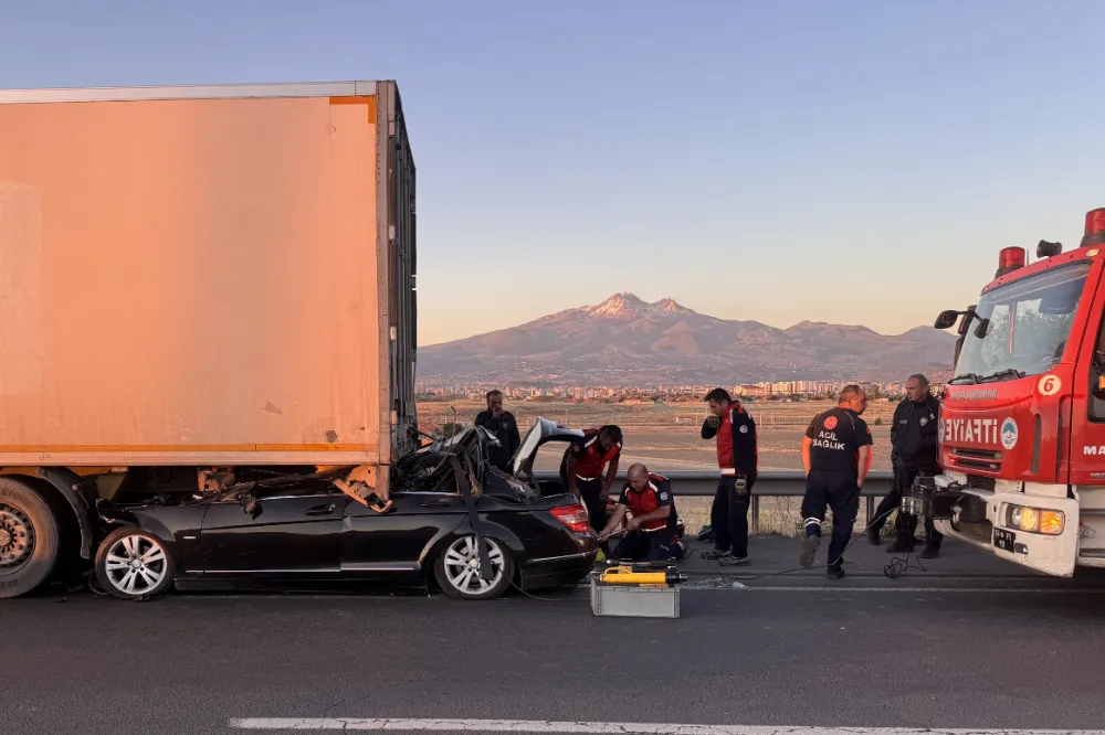 Alınan bilgiye göre, sürücüsünün ismi henüz öğrenilemeyen 38 ALU 685 plakalı otomobil, Kocasinan ilçesi Kuzey Çevre Yolu'nda seyir halindeki 01 UC 969 plakalı tıra arkadan çarptı.