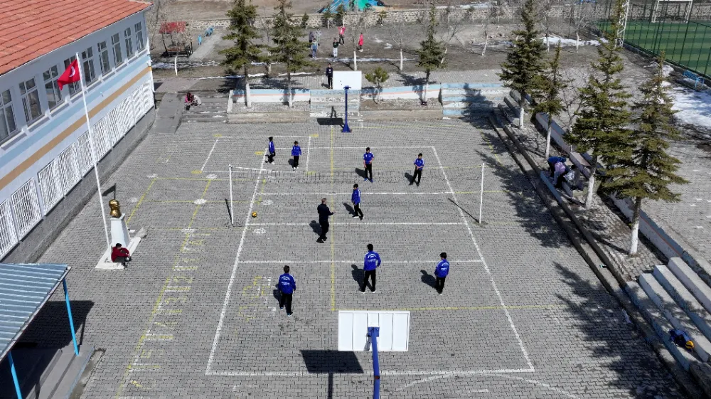 Kırsalda olmaları nedeniyle kısıtlı imkanlara sahip öğrenciler, teneffüslerde, okul çıkışlarında ve ailelerine yardım ettikleri işlerden kalan vakitlerde okul bahçesindeki parke taşların üzerindeki voleybol sahasında ter dökmeye başladı.