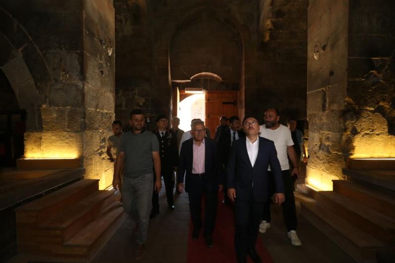 Kayseri Valisi Gökmen Çiçek, Kayseri Büyükşehir Belediye Başkanı Memduh Büyükkılıç ile birlikte Bünyan’da 1240 yılında Selçuklu Veziri Celalettin Karatay tarafından yaptırılan Karatay Hanı Kervansarayı’nda incelemelerde bulundu.