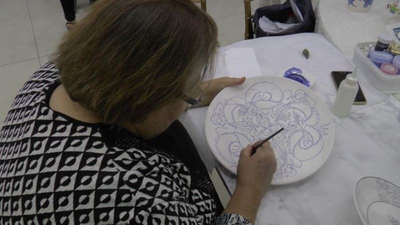 Kayseri'de Kocasinan Halk Eğitim Merkezi tarafından Hayat ve Öğrenme Haftası çerçevesinde ‘Yıl Sonu Ürün Sergisi’ açılışı yapıldı. 4 sene önce çini boyama sanatı alanında kursa başlayan ve kursa hala devam eden 70 yaşındaki Nermin Barlas da yaptığı eserlerini sergiledi.