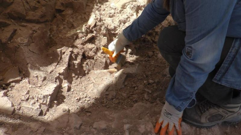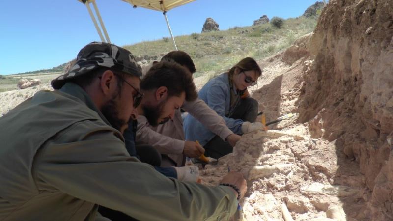 Yeni bir seviyede çalışmalarına başladıklarını belirten Uzman Antropolog Ömer Dağ şu bilgileri paylaştı “Kazı çalışmalarımız 2018 yılından beri devam ediyor. Bu yıl da Haziran ayı itibariyle kazı çalışmalarımıza başladık. Müze Müdürlüğü, Kazılar Daire Başkanlığı ve Kayseri Büyükşehir Belediye Başkanlığı izni ve destekleri ile kazılarımız devam etmekte. Önceki yıllarda bulduğumuz eşsiz örnekler birçok bilim insanının dikkatini çekti. O yüzden de lokalitemize yoğun bir ilgi gösterdiler. Kendilerini misafir ettik. Bu sene çok önemli bilim insanları direkt kazı alanımıza gelip yerinde engin bilgilerini bizlerle paylaştı. Taşhan Mahallesi’nde belli bir seviyemiz yoktu. Bu kadar yoğun bir şekilde gelen alanımız yoktu. Bu sene onun tespitini sağladık. Şu anda da o alanda bulunuyoruz. Hemen burada yoğun bir fosil buluntumuz var. İç içe geçmiş bağırsak şeklinde bir yerde depolanmış durumda”