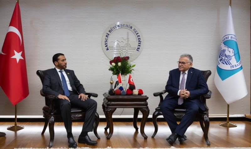 Birleşik Arap Emirlikleri Ankara Büyükelçisi Saeed Thani Hareb Al Dhaheri, Kayseri Büyükşehir Belediye Başkanı Dr. Memduh Büyükkılıç’ı makamında ziyaret etti. Büyükelçi Dhaheri, Başkan Büyükkılıç’a “Bizim için çok değerlisiniz” derken, Başkan Büyükkılıç da Kayseri’nin turizm açısından önemli bir bölge olduğunu belirtti.