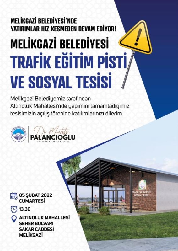 Melikgazi Belediye Başkanı Dr. Mustafa Palancıoğlu Altınoluk Mahallesi’nde yapımını tamamladıkları Trafik Eğitim Pisti Sosyal Tesisin açılış törenini yapacaklarını söyledi. Açılış 05 Şubat Cumartesi günü saat 13.30'da gerçekleştirilecek.