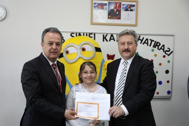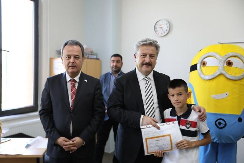 Karne verdiği her öğrenciyle tek tek fotoğraf çektirerek başarılarından dolayı tebrik eden Başkan Dr. Palancıoğlu, “Yoğun geçen bir eğitim-öğretim yılının daha sonuna geldik. Çocuklarımız bizim en değerli varlıklarımızdır. Onların başarılarına olduğu kadar başarısızlıklarına da sahip çıkmalı, sevgi ile yaklaşmalıyız. Geleceğimizin teminatı çocuklarımızın yüzlerini güldürmek bizleri ziyadesiyle mutlu etti. Her zaman hedefimiz iyi insan yetiştirmek olmalıdır. Çocuklarımız bizim umudumuz olan geleciğin mimarları. Aldıkları başarılı bir eğitimle hem kendilerine ve ailelerine hem de ülkeye fayda sağlayacak neferler olacaklar. Öğrencilerimize önümüzdeki yaz tatilini dinlenerek ve bol bol kitap okuyarak geçirmelerini diliyorum. Tüm öğrencilerimizi başarılarından dolayı kutluyor, iyi tatiller diliyorum” dedi.