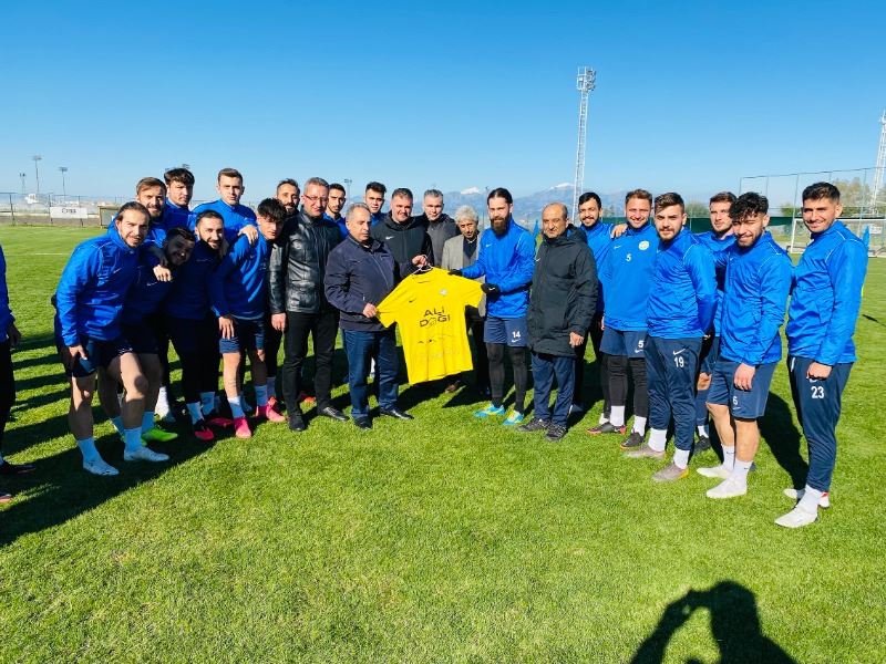 Başkan Yalçın’ın kampa yaptığı ziyaretten memnuniyet duyan teknik heyet ve futbolcular da Başkan Yalçın’a günün anısına üzerinde adı yazılı 38 numaralı takım formasını hediye etti.