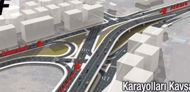 Sanayi odası kavşağında yonca yaprağı yapılacak. Dört taraftan gelen araçların hiçbir ışık beklemeden hareket edeceği bir sistem yapılacak. Her istikametten gelen araç trafiğe takılmadan hareket edecek. Güney kuzey aksında da üstten geçiş olacak. İhale hazırlığı içindeyiz. Çalışmalara Kasım ayı içinde başlayacağız ve 8 ay içinde bu işi bitirmek istiyoruz" açıklamasından sonra Kasım ayı içinde başlatılan çalışmalar tüm hızıyla sürüyor.