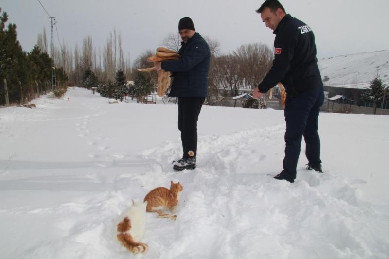 Bünyan Belediyesi zabıta ekipleri yaban hayvanları için doğaya belirli aralıklarla mama, yem ve ekmek bırakılmaya devam ediyor.