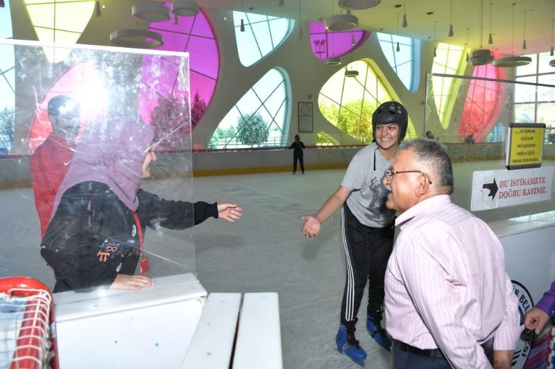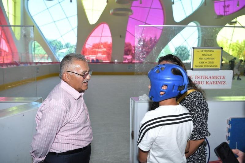 Başkan Büyükkılıç, bu çerçevede Büyükşehir Belediyesi bünyesinde faaliyetlerini sürdüren KAYMEK’in Matematik Kampı’nda eğitim gören öğrencileri, Anadolu Harikalar Diyarı Buz Pateni Pisti’nde ziyaret etti. Öğrencilerin buz pateni etkinliğini izleyen Büyükkılıç, gençlerle yakından ilgilendi.