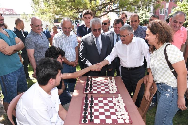 Kurdele kesimi sonrası, dualarla gerçekleştirilen dernek açılışının ardından Başkan Büyükkılıç, usta oyuncularla miniklerin karşılaştığı Türkiye’nin en büyük ödüllü Uluslararası Satranç Turnuvası’nın gösteri maçlarını izledi.