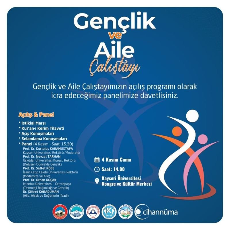 Cihannüma Derneği Kayseri İl Temsilcisi Avukat Fevzi Konaç konu hakkında yaptığı açıklamasında, Kayseri Valiliği, Büyükşehir Belediye Başkanlığı, Erciyes Üniversitesi, Kayseri Üniversitesi ve Talas Belediyesi'nin iş birliği ve katkıları ile Gençlik ve Aile Çalıştayı düzenleneceğini söyledi. Konaç, "4 Kasım Cuma günü Kayseri Üniversitesi Kongre ve Kültür Merkezi'nde Gençlik ve Aile Çalıştayı yapacağız" dedi. Konaç, Cihannüma Derneği Genel Başkanı Rıza Yorulmaz'ın da katılacağı çalıştayda, Vali Gökmen Çiçek, Büyükşehir Belediye Başkanı Memduh Büyükkılıç, Erciyes Üniversitesi Rektörü Prof. Dr. Fatih Altun, Kayseri Üniversitesi Rektörü Prof. Dr. Kurtuluş Karamustafa ve Talas Belediye Başkanı Mustafa Yalçın'ın selamlama konuşmaları ve ayrıca MEB Bakan Yrd. Nazif Yılmaz’ın katılarak konuşma yapacağını açıkladı. Çalıştay açılış programında yer alan panelin moderatörlüğünü Kayseri Üniversitesi Rektörü Prof. Dr. Kurtuluş Karamustafa'nın yapacağını ifade eden Cihannüma Derneği Kayseri İl Temsilcisi Konaç, Üsküdar Üniversitesi Kurucu Rektörü Prof. Dr. Nevzat Tarhan'ın Değişen Dünyada Gençlik, İzmir Katip Çelebi Üniversitesi Rektörü Prof. Dr. Saffet Köse'nin Modernite ve Aile, İstanbul Üniversitesi Cerrahpaşa'dan Prof. Dr. Orhan Koçak'ın Teknoloji Bağımlılığı ve Gençlik, Dr. Şöhret Karaduman'ın ise Aile, Ahlak ve Değerlerin İfsadı konularında sunum ve konuşma yapacaklarını söyledi. Cihannüma Derneği Kayseri İl Temsilcisi Avukat Fevzi Konaç, çalıştayın müzakere konularını ise şu şekilde açıkladı: