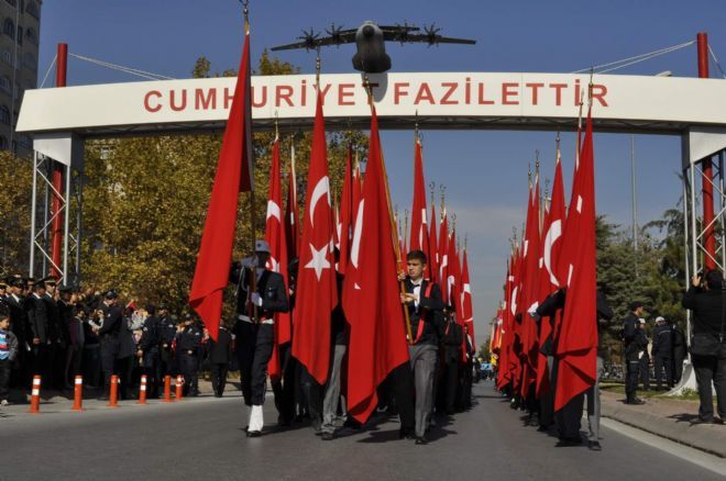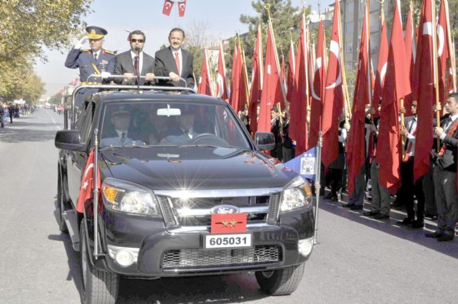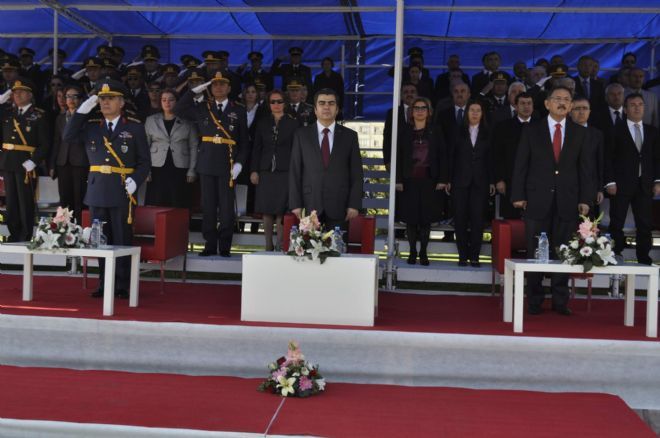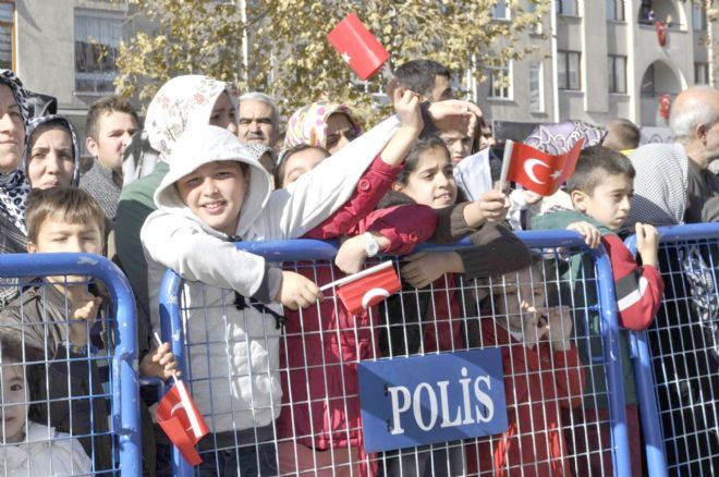 Cumhuriyet Bayramı kutlamaları öncesi Vali Orhan Düzgün, makamında tebrikleri kabul etti. Valilik makamındaki tebriklerin kabulünün ardından Cumhuriyet`in ilan edilişinin 90. yıl dönümü kutlamaları nedeni ile Trafiğe kapatılan Mustafa Kemal Paşa Bulvarı`ndadevam etti. Bulvarda oluşturulan tören alanında askeri birlikler, polis okulu öğrencileri ve ilimizde eğitim veren diğer okullardan törene iştirak eden öğrencilerin oluşturduğu kortej hazır bulundu. Protokol mensupları henüz tören alanına intikal etmeden Mustafa Kemal Paşa Bulvarı üzerinde oluşturulan tören alanındaki kutlamalar okulların Halk oyunları ekiplerinin tören alanını dolduran ilimiz sakinlerine yönelik gerçekleştirdikleri Halk Oyunları Gösterisi ile start verdi. Rengarenk kıyafetleri içinde, davul -zurnanın kıvrak ritimleri ile maharetlerini sergileyen genç yürekler herkesin beğenisini kazandı... Kutlamaların ardından tören alanına intikal eden Vali , Garnizon Komutanı ve Büyükşehir Belediye Başkanı askeri araç içinden vatandaşları selamlarken, vatandaşda alkışlayarak sevgi gösterilerinde bulundu... Saygı duruşu ve İstiklal Marşı`nın okunmasının ardından Cumhuriyet Bayramını anlatan şiirler okunarak devam etti. Törenler Vali Orhan Düzgün`ün günün anlam ve önemini anlatan konuşmasışile devam etti... Düzgün, Tarihin her döneminde büyük devletler kuran ve bağımsızlığını milli karakterinin en temel özelliği sayan "ulus" olduğumuzun altını çizerek, "29 Ekim 1923’te yeni Türk Devleti’nin yönetim biçimini Cumhuriyet olarak ilan etmiştir. Kahraman milletimiz, filen kazandığı bağımsızlığını, uluslar arası hukuk alanında da bu tarihte Türkiye Cumhuriyeti olarak tescil etmiştir. Zorlu İstiklal Harbi yıllarında hemen her evde bir şehit veya gazimizin mübarek kanlarıyla yazılan hürriyet destanı, büyük önder Atatürk’ün ifadesiyle, bir fazilet rejimi olan Cumhuriyet Yönetimi ile taçlanmıştır”,şeklinde konuştu. Vali Düzgün`ün konuşmasından sonra askeri birlikler, polis okulu öğrencileri ve öğrencilerin oluşturduğu kortejin geçişi gerçekleştirilirken, Protokol alkışlarla destek verdi. Askeri Biliklerin lojistik gücü olan tanklar, uçaksavarlar ve benzeri askeri araçların geçişi töreni renkli gösterilere sahne oldu. Tören sonrası Cumhuriyet Bayramı ile ilgili değerlendirmede bulunan Vali Düzgün, Türkiye Cumhuriyetinin 90 yılda çok iyi bir seviyeye geldiğini vurgulayarak, bundan sonra ülkemizin devletimizin hedeflerinden biride 2023`te Cumhuriyetin 100.yılına giden yolda ülkemizi çok daha güçlü, ekonomik gelişimini üst seviyelere taşıyıp vatandaşın refahını sağlamaı, çok daha donanımlı insan gücü yetiştirmiş hale getirerek, Dünyanın ilk 10 ekonomisi arasına girmeliyiz"değerlendirmesinde bulundu. Daha sonra Vali Düzgün, çocuklara hediye dağıtarak fotoğraf çektirdi. Büyükşehir Belediye Başkanı Mehmet Özhaseki de Cumhuriyet Bayramını keyif ve coşkuyla kutladıklarını kaydederek, Dualarının Cenab-ı Allah`ın bu güzel günleri daim ettirmesi, devamlı kılması ve geçmişte yaşadığımız acı olayları bir daha yaşatmaması için olduğunu ifade edip şöyle devam etti "Neredeyse bin yıldır bu topraklardayız. Biz millet olarak bu topraklarda değişik medeniyetler kurduk, son asırda da Cumhuriyeti kurduk. Cenab-ı Allah Cumhuriyetin kuruluş aşamasındaki sıkıntıları bir daha yaşatmasın, o kötü günleri bir daha göstermesin ve gökten bu bayrakları indirmesin, minarelerden ezanları dindirmesin. Bize düşen şey, çok çalışmak, çok gayret etmek, dünya milletler yarışında iyi yerlerde olabilmek, insanların yaşadığı ortamdan mutlu olmasını sağlayabilmek."