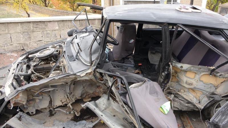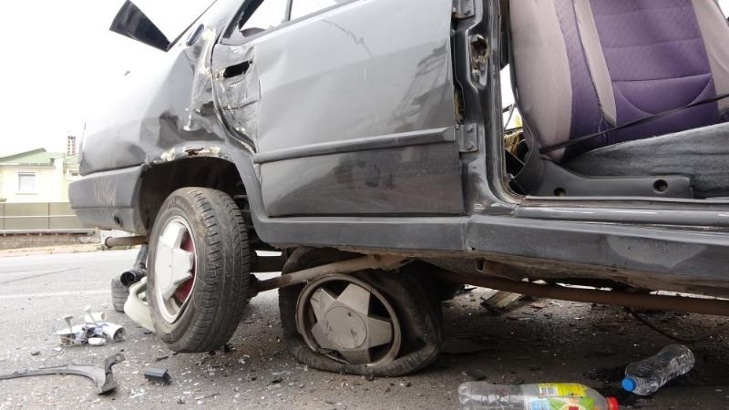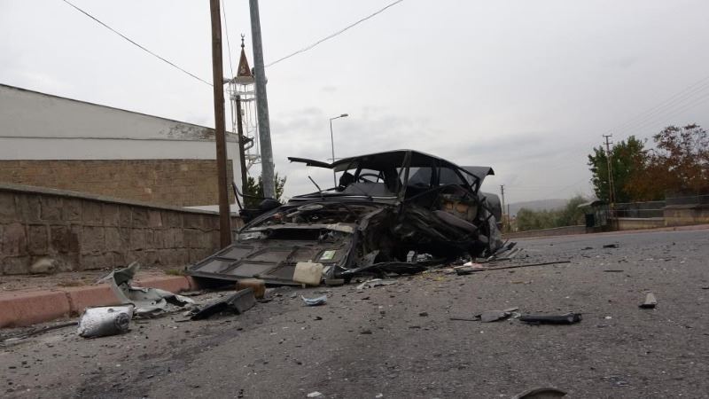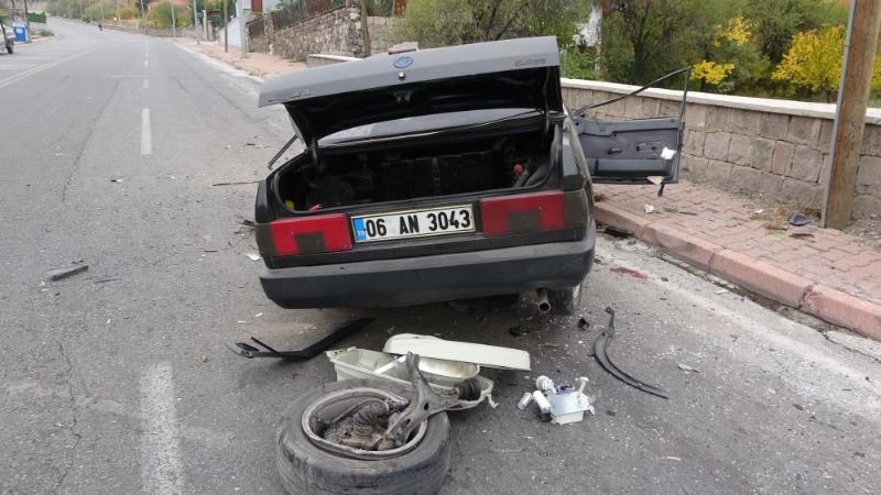 Kayseri'nin Melikgazi ilçesinde otomobillerin çarpışması sonucu meydana gelen kazada 4 kişi yaralanırken, "kuş" grubu olarak bilinen Tofaş marka otomobil parçalara bölündü.