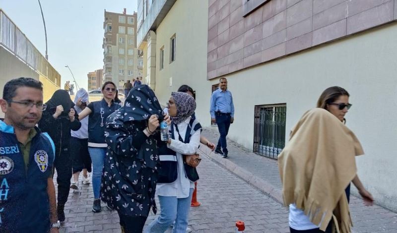 182 farklı erkek müşteri ile aralarında sanatçı, güzellik uzmanı, hemşire, masör gibi farklı sektörlerde çalışan, Kayseri, Antalya, İzmir, Nevşehir, Aksaray illerinde yaşayanların olduğu 49 mağdur kadının fuhuş yapmasına aracılık edip yer ve imkan sağladıkları, bayanların çaresizliklerinden yararlanmak suretiyle haksız kazanç elde ettikleri tespit edilen 8’i erkek olmak üzere toplam 27 şüpheli şahıs düzenlenen operasyonla yakalandı. İşlemleri tamamlanan şüpheliler, sağlık kontrolünden geçirilerek hakim karşısında hesap vermek üzere adliyeye sevk edildi.